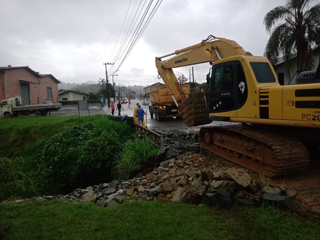 O deputado estadual Dr. Vicente e o diretor municipal de Defesa Civil, Ezequiel de Souza, visitaram na manhã desta sábado (8) os pontos críticos e danificados pelo excesso de chuvas dos últimos dias em Guaramirim. Os dois passaram primeiramente pelo trecho de erosão na ponte da divisa entre Guaramirim e Jaraguá do Sul, onde a equipe de obras já estava realizando o trabalho de recuperação dos danos.