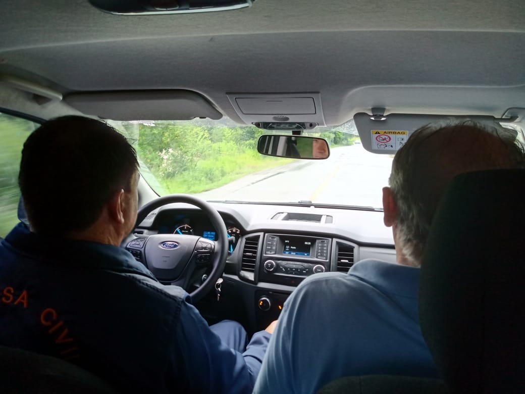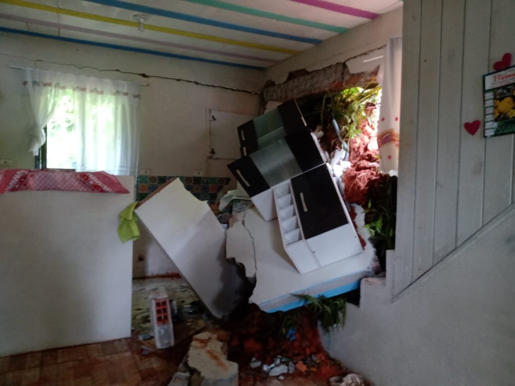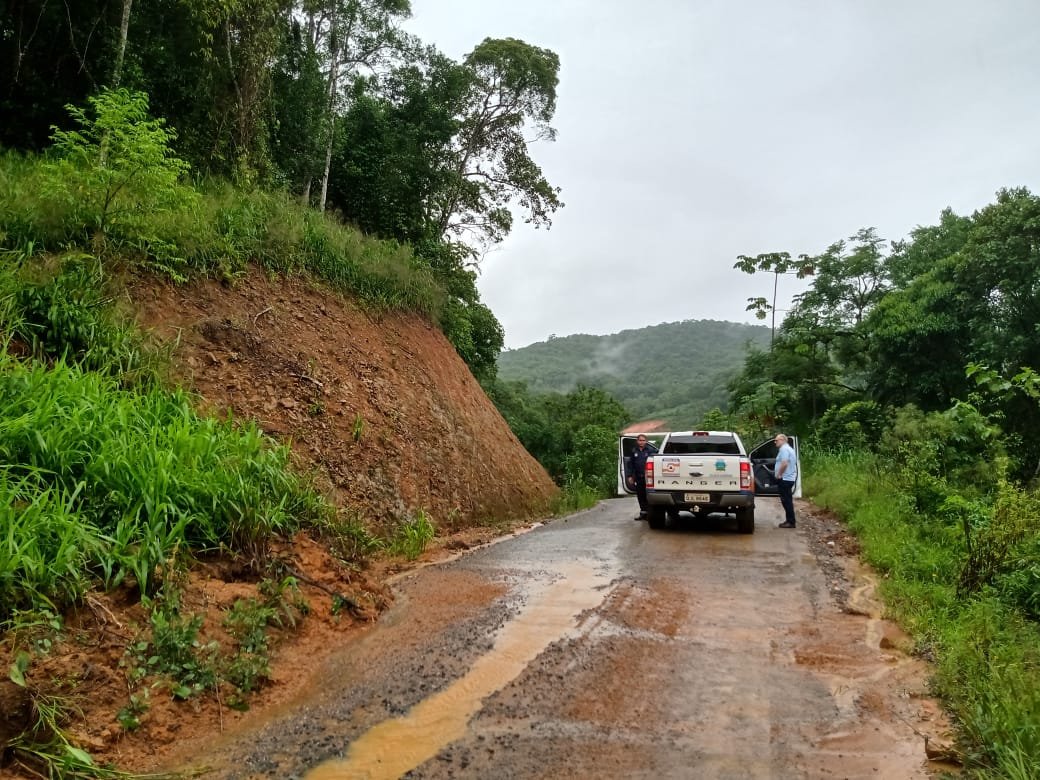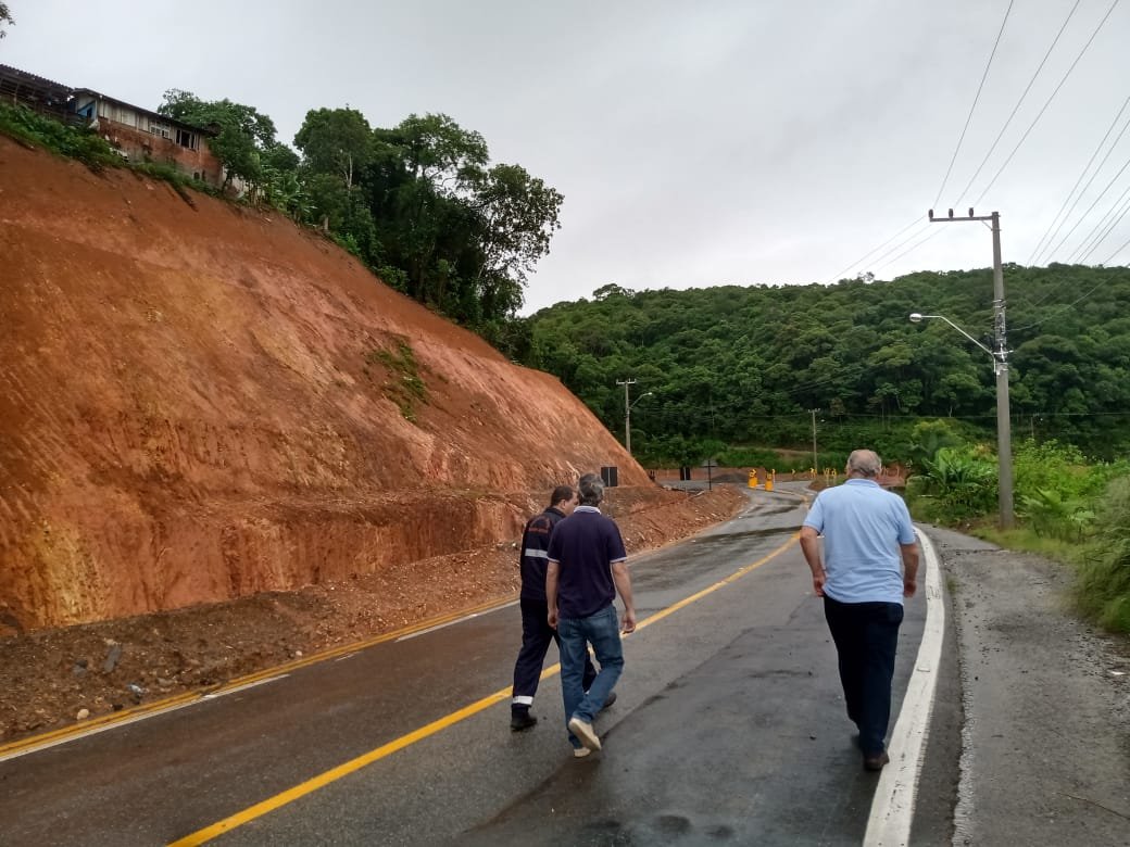 Na sequência, seguiram para a região do deslizamento na SC-108 e foram até o bairro Bananal do Sul, onde, em alguns trechos da estrada, havia alagamentos e deslizamentos que dificultavam a passagem de veículos. Já no bairro Caixa D´Água, os dois visitaram os moradores Mariana Narcizo e Arlindo. O casal teve a casa parcialmente destruída por um deslizamento que invadiu a parte da cozinha.
